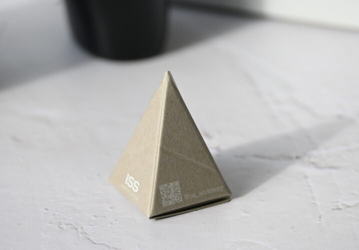 落ち着いた色味と、紙と加工がつくる陰影で、ISSらしいミニマルな世界観を表現した一枚です。